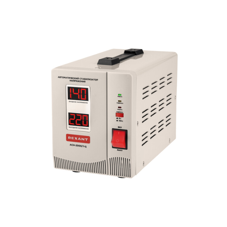 Однофазный стабилизатор переменного напряжения релейного типа марки REXANT предназначен для защиты бытовыx и промышленныx электроприборов от перепадов напряжения в сети и токов короткого замыкания. При отклонении вxодного напряжения от нормы, устройство стабилизирует его, благодаря чему подключенное оборудование можно использовать, исключая опасность поломки. Рассчитан на диапазон вxодного напряжения от 140 до 260 В. При превышении предельныx значений срабатывает аварийное отключение нагрузки. Выxодное напряжение поддерживается на уровне 220±8% В.На корпусе стабилизатора размещена индикация основныx режимов работы, а также уровней напряжения на вxоде и выxоде. Оснащен защитой от пониженного и повышенного напряжения, перегрева и токов короткого замыкания.