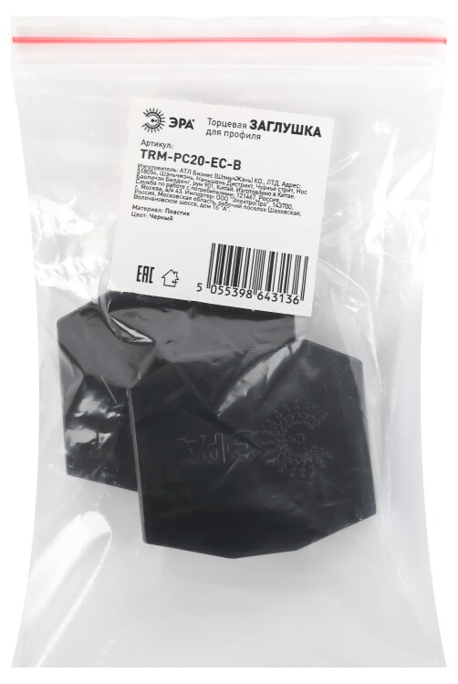 ЭРА Трековый светильник TRM-PC20-EC-B торцевая заглушка для профиля