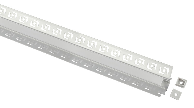 Комплект алюминиевого профиля под штукатурку для внутреннего угла предназначен для установки светодиодных лент с шириной подложки до 9мм. За счёт отведения тепла увеличивает срок службы светодиодной ленты. Анодированное покрытие обеспечивает устойчивость к воздействиям окружающей среды и легко окрашивается. Эстетично смотрится в интерьере, обеспечивает механическую защиту. В комплекте алюминиевый профиль 4624 46х24 мм 2,5 м, белый матовый экран из поликарбоната 2,5 м и 2 заглушки.