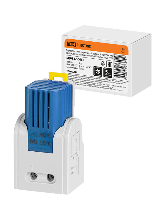 TDM Термостат с фиксированной уставкой ТФУ-004 NО (охлаждение, темп. вкл/выкл 60/50), 5 А, 230 В