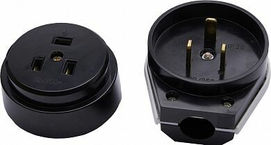 Вилка угловая с розеткой STEKKER PPG32-51-20, с заземлением, тип установки открытый. Для проводов сечением 2,5мм2. Материал изделия бакелит; цвет черный; размер 75*65*85мм. Номинальное напряжение 250В, Номинальный ток 32А, диапазон рабочих температур 0..+35°C, степень пылевлагозащиты IP20