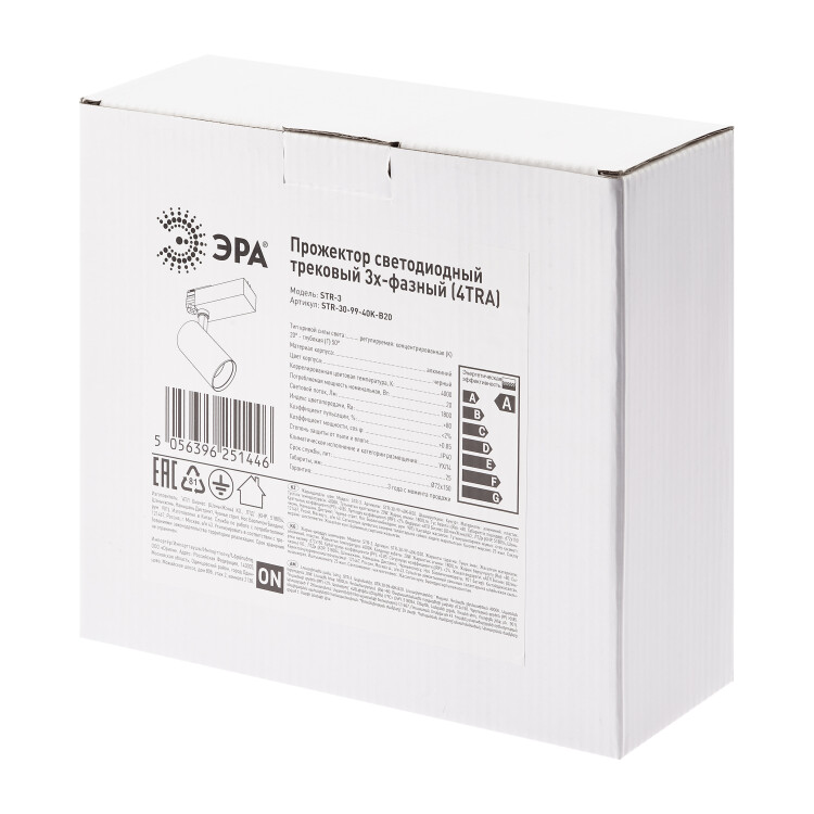 ЭРА Трековый светильник трехфазный STR-30-99-40K-B20 регулируемый луч 4000K черный