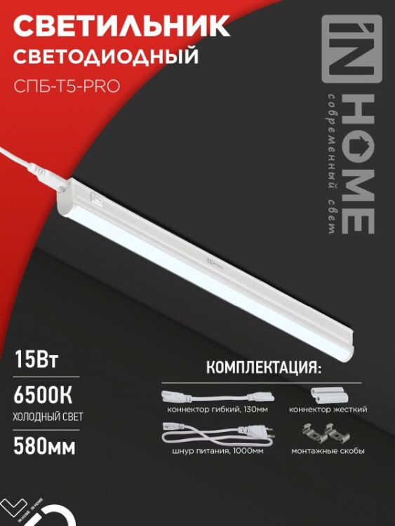 IN HOME Светильник светодиодный СПБ-Т5-PRO 15Вт 230B 6500К 1500Лм 600мм 1/25