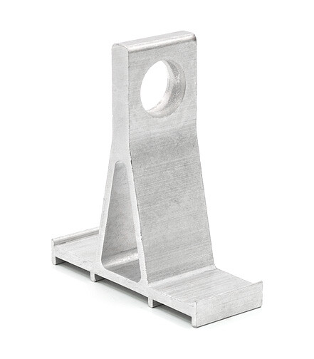 Предназначен для крепления анкерного зажима для магистрального СИП на опоре или на фасаде здания. Кронштейн представляет собой крепежный элемент из алюминиевого сплава. Крепление осуществляется при помощи двух полос монтажной ленты шириной 20 мм в один оборот вокруг опоры и двух скреп С 20 или бугелей B 20. Наличие ребер в основании кронштейна обеспечивает необходимое расстояние для надежного крепления кронштейна к опоре стальной монтажной лентой. Форма проушины кронштейна препятствует быстрому износу коуша крепёжного троса или крепёжной скобы анкерного зажима. Обладает устойчивостью к ультрафиолету, коррозии, воздействию экстремальных температур, влажности и другим погодно-климатическим факторам.