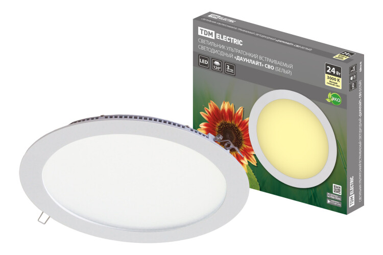 TDM Светильник ультратонкий встраиваемый светодиодный "Даунлайт" СВО (белый) 24 Вт 3000К.