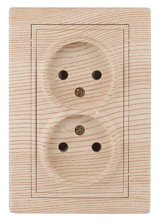 Розетка двойная 2-я серии Intro Plano скрытой уста новки цвет сосна 1-204-11. Номинальные характеристики 16А 250В. Розетка выполнена из керамики, укомплектована одноместной рамкой, оснащена винтовыми клеммами. Клеммы с двумя отверстиями позволяют соединять соседние розетки шлейфом. Установка в подрозетник производится как на монтажные лапки, так и на винты.