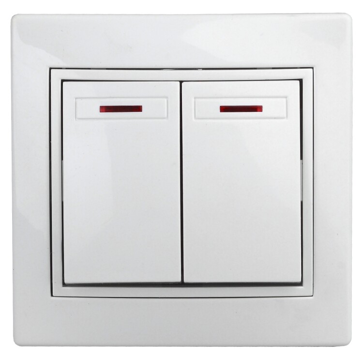 Выключатель двойной с подсветкой, 10А-250В, СУ, б.л., Plano, белый