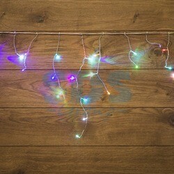 Гирлянда «Айсикл» 1,8?0,5 м представляет собо й горизонтальный кабель в гибкой оболочке из прозрачного ПВХ, с расположенными на нем свисающими нитями длиной от 10 до 50 см. 48 светодиодов переливаются разноцветными огнями RGB (256 разных оттенков). Гирлянда в виде бахромы прекрасно подходит для декора гардин, окон, дверных проемов, отдельных интерьерных предметов и предназначена для использования в помещениях с умеренной влажностью.