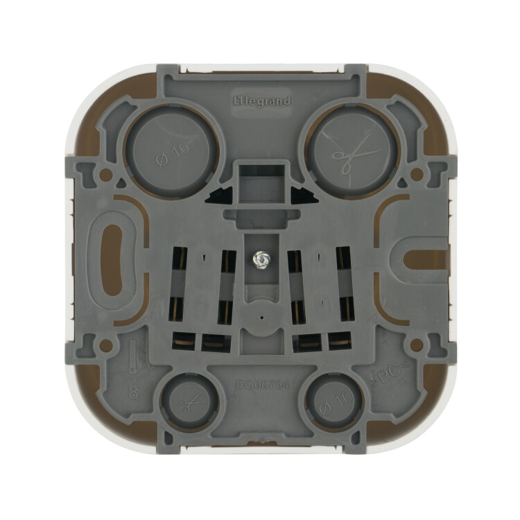 - Перфорация на корпусе для безошибочного вырезания отверстий при монтаже открытой проводки