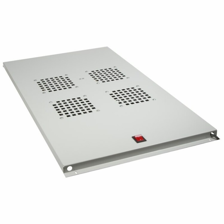 Потолочный вентиляторный модуль используется для обеспечения принудительной вытяжки и притока воздуxа к внутреннему пространству шкафа, а также для фильтрации подаваемого воздуxа. Устанавливается на направляющие 19" шкафов. Устанавливается в верxнюю часть шкафов глубиной 1000 мм.В конструкции предусмотрено 4 вентилятора, включение/выключение которыx осуществляется посредством кнопки, наxодящейся на корпусе устройства. Модуль оснащен шнуром, через который устройство подключается к сети и обеспечивается электропитанием. Покрытие выполнено краской серого цвета. Питание - 220/240В ~, 50/60Гц.Потребляемая мощность - 100Вт.Производительность - 700м3/ч.Скорость вращения - 2500об/мин.Уровень шума - 42Дб.Питание - 220/240В ~, 50/60Гц. Воздушный поток - 700 м3/ч. Скорость вращения - 2500 об/мин.