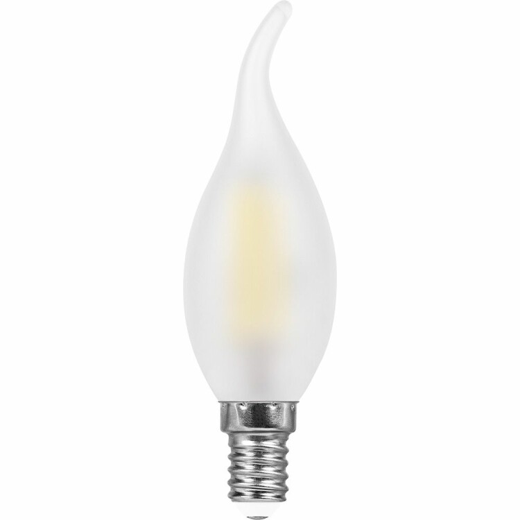 Лампа светодиодная филамент FERON LB-714, C35T (свеча на ветру), 11W 230V E14 2700К (белый теплый), рассеиватель матовый белый, 910Lm, угол рассеивания 270°, 121*35мм