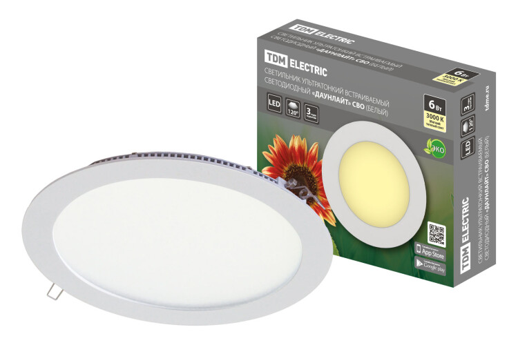TDM Светильник ультратонкий встраиваемый светодиодный "Даунлайт" СВО (белый) 6 Вт 3000К.