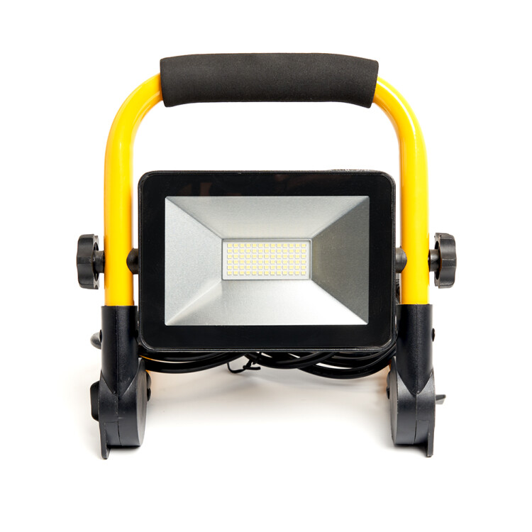 Прожектор светодиодный переносной с ручкой, (ДО) FERON LL-513, 50W, 6400К (холодный белый), 220-240V/50Гц, 4500Lm, IP65, угол рассеивания 120°,*SMD2835, раб.t -40°C - +40°C, цвет черный-желтый, корпус алюминий литой под давлением + стекло, 255*57*275 мм