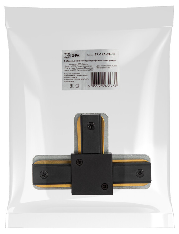 ЭРА Коннектор питания TR-1PA-СT BK для однофазного шинопровода T-образный черный