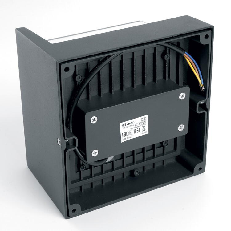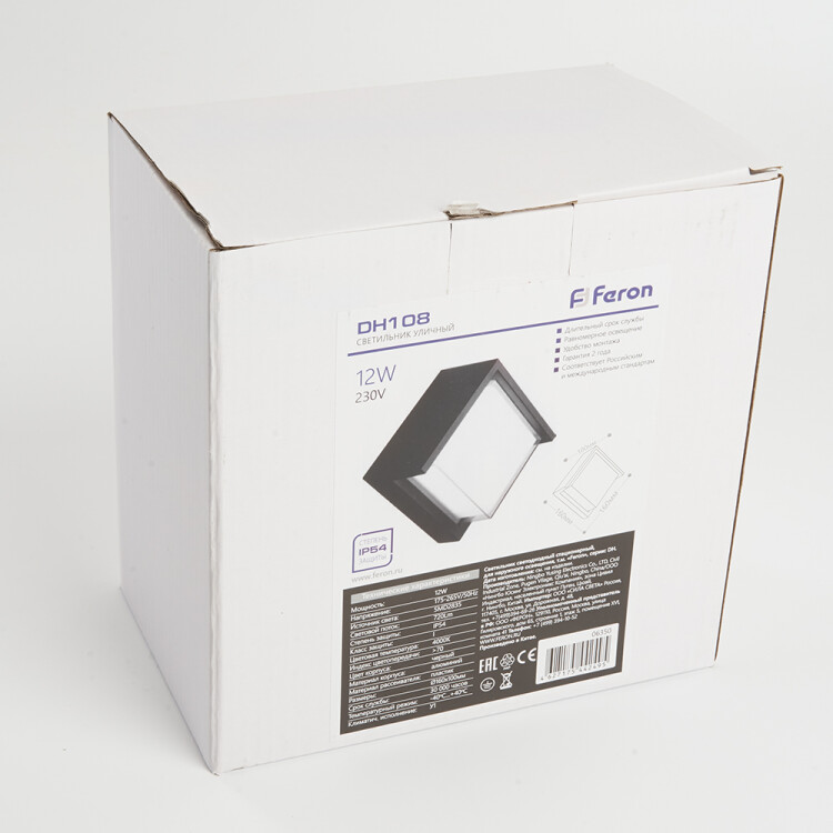 Светильник уличный светодиодный, на стену (ДБУ) FERON DH108, серия Мельбурн, 12W, 4000К (белый натуральный), 175-265V/50Гц, 720Lm, IP54, 60LED*SMD2835, класс защиты 1, раб.t -40°C...+40°C, цвет черный, корпус алюминий, 160*100*160мм,
