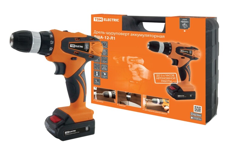 TDM Дрель-шуруповерт акк. ДША-12-Л1 12 В, 1,3 А*ч Li-Ion, 22 Нм, 0-1350 об/мин, кейс, "