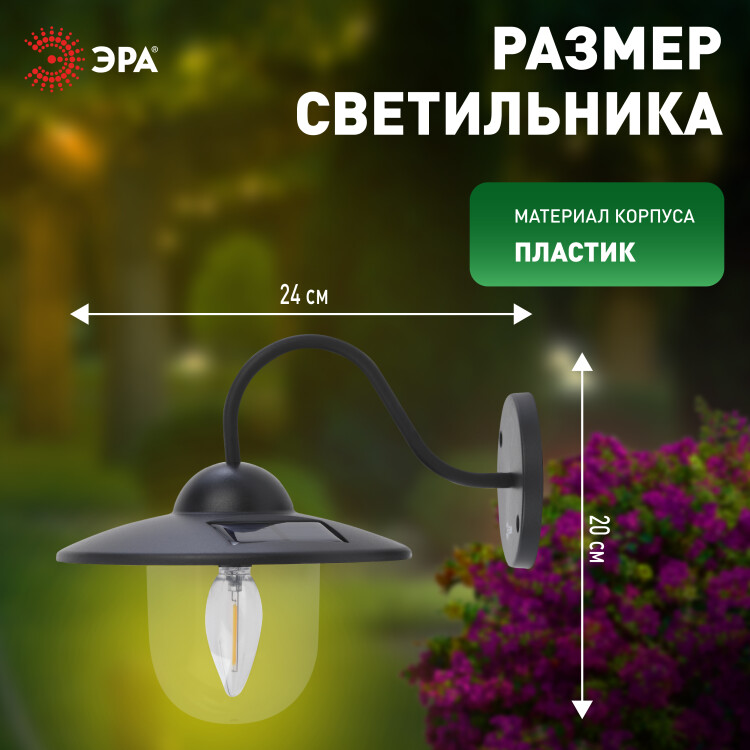Уличный светильник ЭРА ERASF22-38 (арт. Б0053388) в стиле ретро работает от двух солнечных панелей, встроенных в козырёк. Элегантный и практичный световой декор приусадебных территорий. Фасадный LED-светильник работает и в дождливую, и в ветреную погоду. Светит нейтральным белым светом, приближенным к естественному дневному. Солнечные батареи отлично накапливают световую энергию, что даёт возможность светодиодной лампочке светить до 8 часов в тёмное время суток. Аккумулирование энергии солнца происходит даже в пасмурный день. Светильник уличный фасадный с круглым традиционным козырьком изготовлен из прочного лёгкого пластика, устойчивого к негативному воздействию окружающей среды.