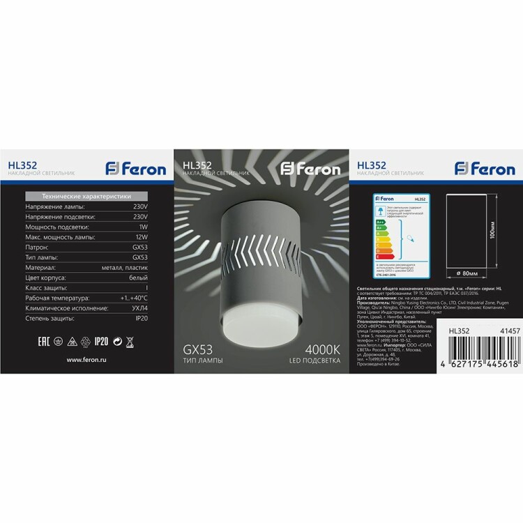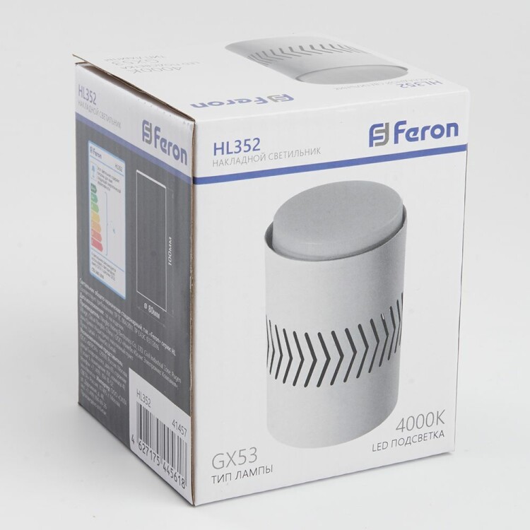 Светильник накладной под лампу, (ИВО) FERON HL352, GX53 12W, (4000К), 230V, IP20, цвет белый, корпус металл, пластик, 80*80*100