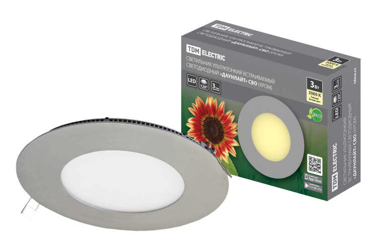 TDM Светильник ультратонкий встраиваемый светодиодный "Даунлайт" СВО (хром) 3 Вт 3000К.