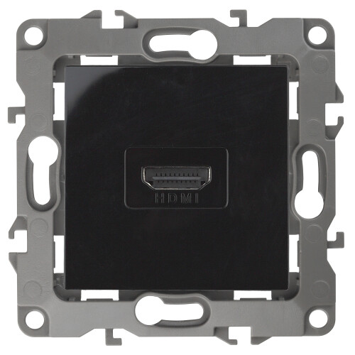 Розетка HDMI серии Эра 12 скрытой установки механизм цвет чёрный 12-3114-06. Сделана из поликарбоната. Монтаж в подрозетник производится и на лапки, и на винты. Рамки приобретаются отдельно. Рамки Эра 12: 1 пост 12-5001-хх, 2 поста 12-5002-хх, 3 поста 12-5003-хх, 4 поста 12-5004-хх, 5 постов 12-5005-хх. Рамки Эра 12 Сатин: 1 пост 12-5101-хх, 2 поста 12-5102-хх, 3 поста 12-5103-хх, 4 поста 12-5104-хх, 5 постов - 12-5105-хх (хх - код цвета: 01-белый, 02-слоновая кость, 03-алюминий, 04-шампань, 05-антрацит, 06-чёрный, 07-ольха(белёный дуб-сатин), 08-вишня, 09-дуб, 10-венге, 11-сосна, 21-жёлтый, 22-оранжевый, 23-красный, 24-охра, 25-бордо, 26-лайм, 27-зелёный, 28-голубой, 29-синий).
