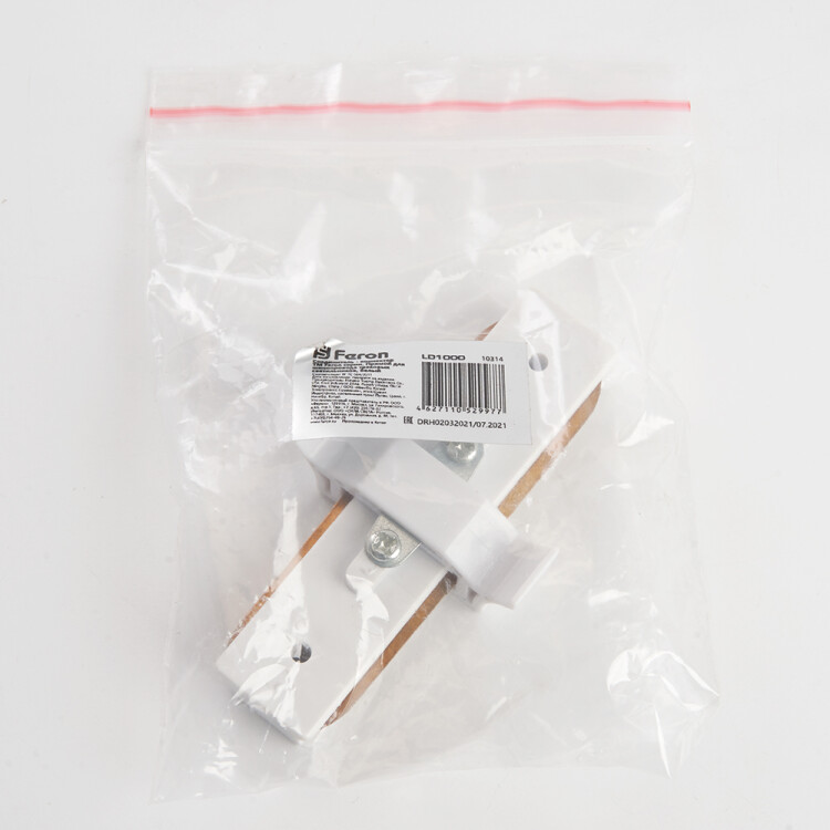 Feron Коннектор прямой для шинопровода, белый, LD1000 для CAB1003