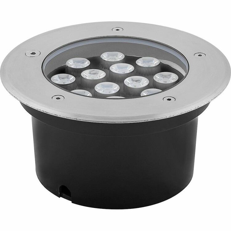 Тротуарный светильник светодиодный, встраиваемый (ДВУ) FERON SP4114, 12W, 2700К (теплый белый), 230V/50Гц, 950Lm, IP67, угол рассеивания 24°, 12LED*HPL, класс защиты 1, цвет металлик, корпус алюминий, сталь, 180*180*85мм, D внутр. 130мм