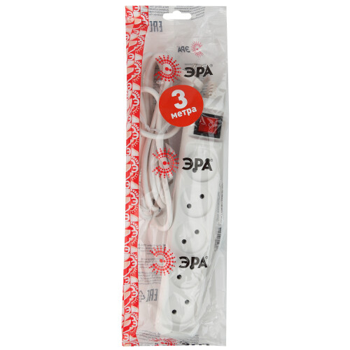 Удлиниль бытовой ЭРА. Серия U. Максимальная мощность 10 А/ 2200 Вт. Без заземления. Провод ПВС.