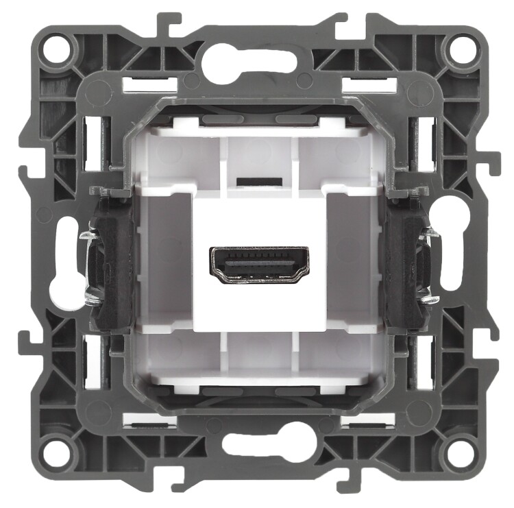 Розетка HDMI серии Эра 12 скрытой установки механизм цвет графит 12-3114-12. Сделана из поликарбоната. Монтаж в подрозетник производится и на лапки, и на винты. Рамки приобретаются отдельно. Рамки Эра 12: 1 пост 12-5001-хх, 2 поста 12-5002-хх, 3 поста 12-5003-хх, 4 поста 12-5004-хх, 5 постов 12-5005-хх. Рамки Эра 12 Сатин: 1 пост 12-5101-хх, 2 поста 12-5102-хх, 3 поста 12-5103-хх, 4 поста 12-5104-хх, 5 постов - 12-5105-хх (хх - код цвета: 01-белый, 02-слоновая кость, 03-алюминий, 04-шампань, 05-антрацит, 06-чёрный, 07-ольха(белёный дуб-сатин), 08-вишня, 09-дуб, 10-венге, 11-сосна, 21-жёлтый, 22-оранжевый, 23-красный, 24-охра, 25-бордо, 26-лайм, 27-зелёный, 28-голубой, 29-синий).