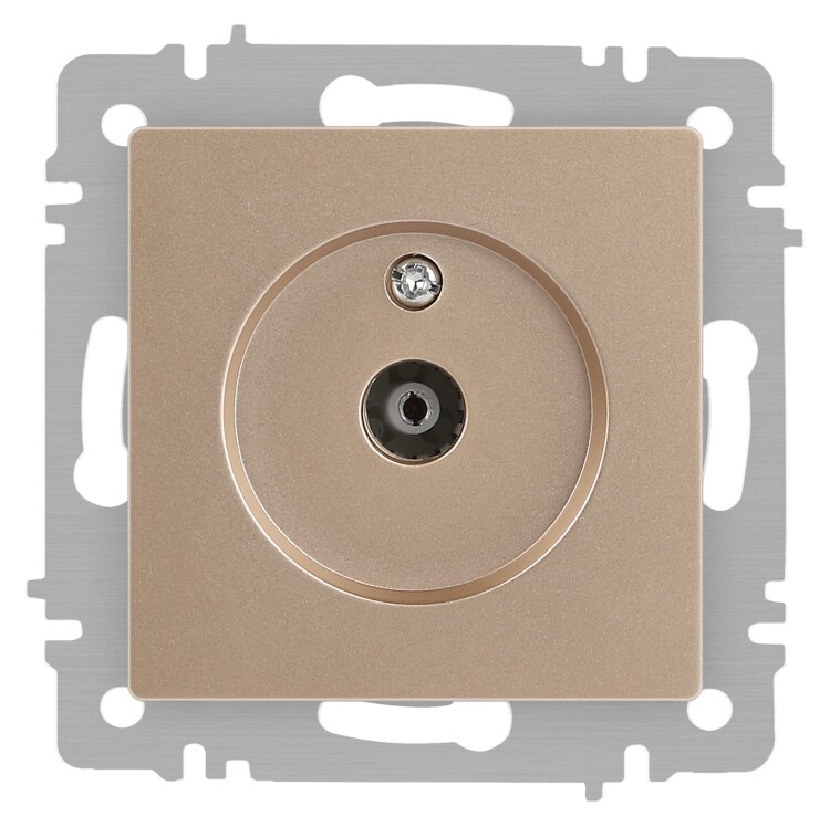 Розетка телевизионная серии Intro Accent скрытой установки механизм цвет шампань 6-301-04. Выполнена из негорючего термопласта. Монтаж в подрозетник производится и на лапки, и на винты. Рамка приобретается отдельно. В серии представлены рамки до 5 постов: на 1 пост - 6-501-хх, на 2 поста - 6-502-хх, на 3 поста - 6-503-хх, на 6 поста - 4-504-хх, на 5 постов - 6-505-хх (где хх - цветовой код: 01 - белый, 01М - матовый белый, 02 - слоновая кость, 03 - алюминий, 04 - шампань, 05 - антрацит, 06 - перламутр, 07 - графит, 08 - бронза, 09 - титан, 10 - венге, 11 - сосна)