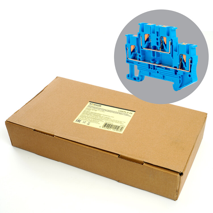 LD575-2-25 ЗНИ Зажим самозажимной, 4-проводной проходной 2 уровня 2,5 мм? (JXB PT 2,5), синий