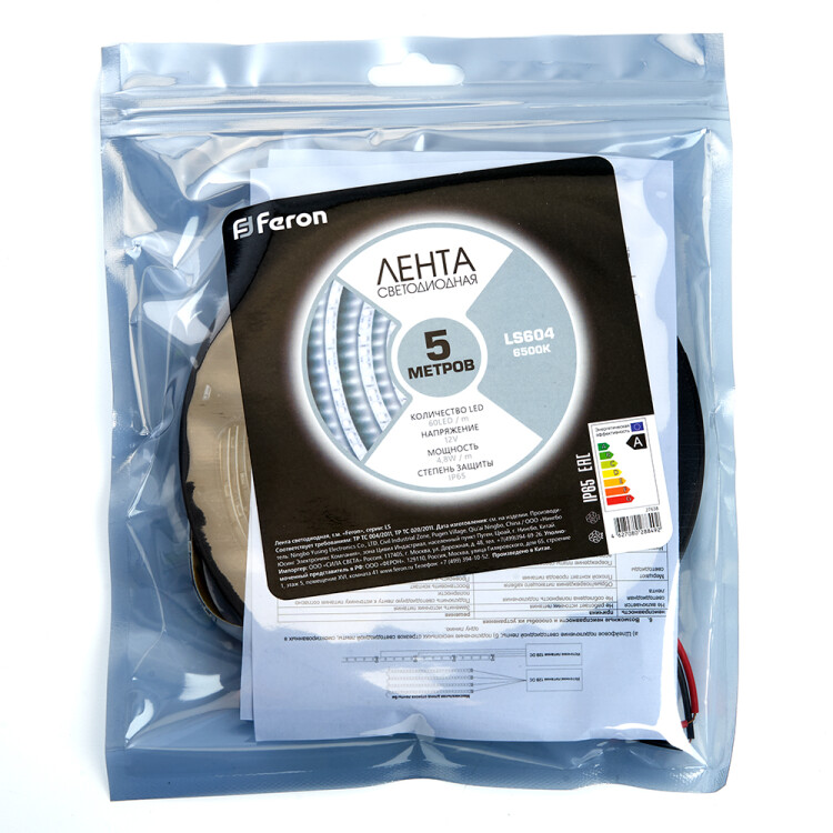 Feron Лента светодиодная, 60SMD(2835)/m 4.8W/m 12V IP65 5m, 6500К, LS604