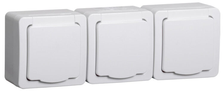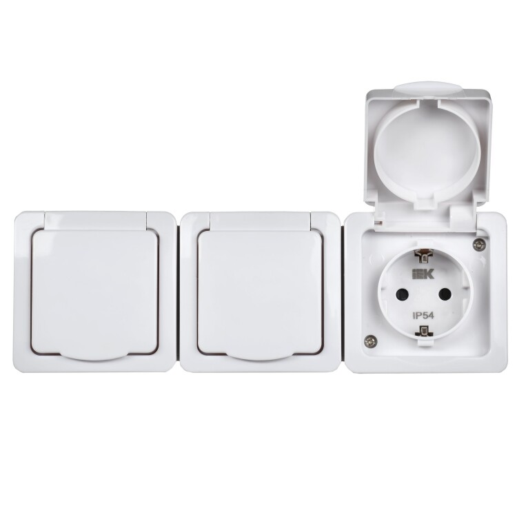 IEK GERMES PLUS Бел Розетка 3-мест. 6мод. в сборе с корпусом с З/К откр. уст-ки16А 220-250В с крышкой винт. зажим IP54