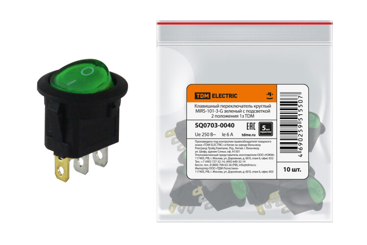 TDM Клавишный переключатель круглый MIRS-101-3-G зеленый с подсветкой 2 положения 1з.