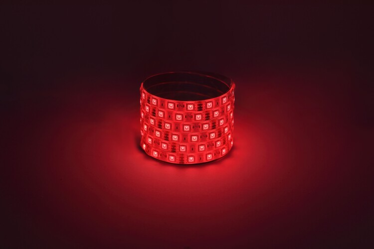 В составе комплекта: LED лента на двустороннем скотче, источник питания, Wifi-контроллер. Управление лентой осуществляется через смартфон с помощью приложения. Регулировка яркости свечения от 1 % до 100%. 16 млн. комбинаций цвета и яркости. Рабочее напряжение ленты составляет 12В, а мощность равна 7,2 Вт/м. Светодиодная лента обладает световым потоком , и цветом свечения - многоцветный (620/520/465 Нм)