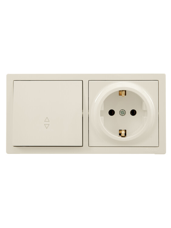 LETO Выключатель проходной и розетка с/з, крем горизонталь (10шт/120шт)