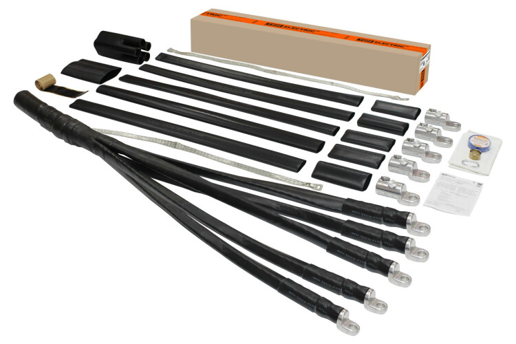 Применение:Для кабелей: ВБбШв, ПвБбШв, ПвБбШп, АВБбШв, АПвБбШв, АПвБбШп и их аналогов Материалы:Полиолефин модифицированный потоком быстрых электроновПреимущества:Имеют высокие изоляционные свойстваУстойчивы к ультрафиолетовому излучению и воздействию климатических факторовПрименяются с кабелями, как с медными, так и с алюминиевыми жиламиИспользуются при монтаже муфт как внутренней, так и наружной установкиТермоплавкий клей, нанесенный на внутреннюю поверхность перчатки и трубок, обеспечивает полную герметичность муфты после монтажаВ комплекте кабельные наконечники с контактными болтамиСовместимы с кабелями с нулевой жилой пониженного сеченияУзел непаяного заземления обеспечивают надежный контакт и упрощает монтаж муфтыВозможно применение с экранированными кабелями Назначение:Для оконцевания 4 или 5-ти жильных бронированных кабелей с пластмассовой изоляцией (ПВХ, СПЭ) на напряжение до 1 кВ Конструкция:Термоусаживаемая перчаткаТермоусаживаемые трубки по количеству жил кабеляТермоусаживаемые трубки на наконечники по количеству жил кабеляБолтовые наконечникиНепаяный узел заземления