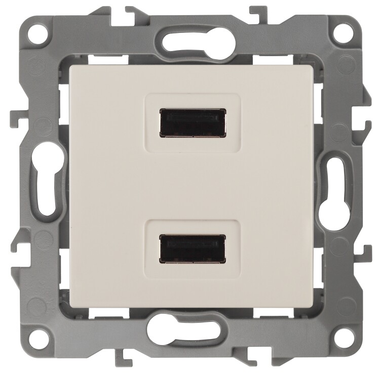 Устройство зарядное USB серии Эра 12 скрытой установки механизм цвет слон.кость 12-4110-02. Номинальные характеристики 5В-2100мА. Сделано из поликарбоната. Монтаж в подрозетник производится и на лапки, и на винты. Рамки приобретаются отдельно. Рамки Эра 12: 1 пост 12-5001-хх, 2 поста 12-5002-хх, 3 поста 12-5003-хх, 4 поста 12-5004-хх, 5 постов 12-5005-хх. Рамки Эра 12 Сатин: 1 пост 12-5101-хх, 2 поста 12-5102-хх, 3 поста 12-5103-хх, 4 поста 12-5104-хх, 5 постов - 12-5105-хх (хх - код цвета: 01-белый, 02-слоновая кость, 03-алюминий, 04-шампань, 05-антрацит, 06-чёрный, 07-ольха(белёный дуб-сатин), 08-вишня, 09-дуб, 10-венге, 11-сосна, 21-жёлтый, 22-оранжевый, 23-красный, 24-охра, 25-бордо, 26-лайм, 27-зелёный, 28-голубой, 29-синий).