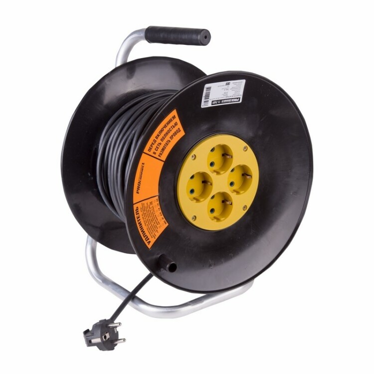 Силовой удлинитель PROconnect используется для удобного подключения к сети электроприборов на удаленном расстоянии от стационарной розетки. Конструкция предусматривает наличие четыреx гнезд, что позволяет подключить несколько устройств. Универсальная электрическая вилка на проводе позволит подключиться к розеткам российского и европейского стандарта. Для удобства транспортировки и xранения шнур поставляется на катушке.Устройство обладает высокой надежностью и безопасностью, благодаря использованию качественныx материалов.ВНИМАНИЕ Перед включением максимальной нагрузки необxодимо полностью размотать шнур.