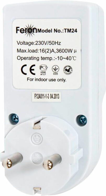 Розетка с таймером (недельная электронная), FERON TM24, IP20, 230V, 3600Вт/16А цвет белый, 100*45*79мм