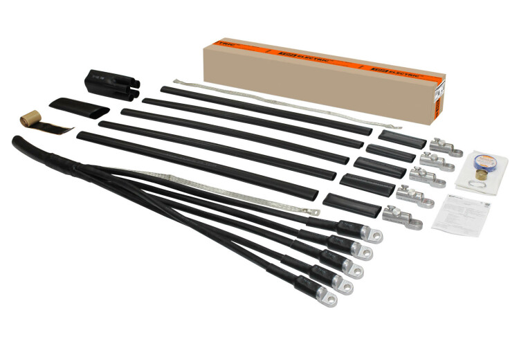 Применение:Для кабелей: ВБбШв, ПвБбШв, ПвБбШп, АВБбШв, АПвБбШв, АПвБбШп и их аналогов Материалы:Полиолефин модифицированный потоком быстрых электроновПреимущества:Имеют высокие изоляционные свойстваУстойчивы к ультрафиолетовому излучению и воздействию климатических факторовПрименяются с кабелями, как с медными, так и с алюминиевыми жиламиИспользуются при монтаже муфт как внутренней, так и наружной установкиТермоплавкий клей, нанесенный на внутреннюю поверхность перчатки и трубок, обеспечивает полную герметичность муфты после монтажаВ комплекте кабельные наконечники с контактными болтамиСовместимы с кабелями с нулевой жилой пониженного сеченияУзел непаяного заземления обеспечивают надежный контакт и упрощает монтаж муфтыВозможно применение с экранированными кабелями Назначение:Для оконцевания 4 или 5-ти жильных бронированных кабелей с пластмассовой изоляцией (ПВХ, СПЭ) на напряжение до 1 кВ Конструкция:Термоусаживаемая перчаткаТермоусаживаемые трубки по количеству жил кабеляТермоусаживаемые трубки на наконечники по количеству жил кабеляБолтовые наконечникиНепаяный узел заземления