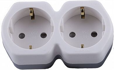 Сетевой разветвитель STEKKER ADP16-12-20 с заземлением, количество присоединяемых устройств 2, номинальное напряжение 250В, номинальный ток 16А, материал пластик, цвет белый+серый, IP20