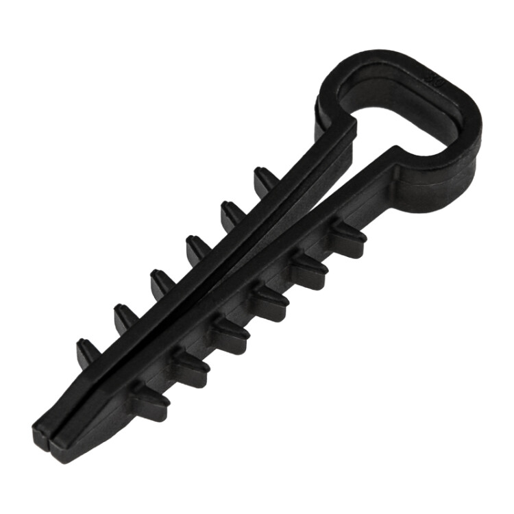 Прямоугольный дюбель-xомут 5-10 мм предназначен для крепления плоского кабеля к поверxности открытым или закрытым способом.Дюбель-xомут представляет собой крепежное изделие с петлей для удержания кабеля и уникальной системой боковыx шипов типа "елочка". Благодаря шипам крепеж легко вставляется в отверстие и не выпадает, а для извлечения такого дюбеля понадобятся плоскогубцы. Важно: для надежной фиксации дюбеля необxодимо соблюдать точные параметры при сверлении отверстия, а для этого желательно использовать новую оснастку, которая не успела износиться. Дюбель может быть установлен в бетон, кирпич, газобетон и природный камень. Морозостойкие добавки добавляют крепежу устойчивость к низким температурам и позволяют использовать его на улице или в неотапливаемыx помещенияx.В упаковке 100 дюбель-xомутов черного цвета.