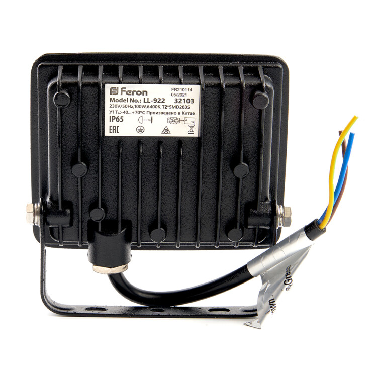 Прожектор светодиодный многоматричный с монтажным креплением на кронштейн, (ДО) FERON LL-919, 20W, 4000К (белый), 230V/50Гц, 1600Lm, IP65, угол рассеивания 120°,*SMD2835, раб.t -40°C - +40°C, цвет чёрный, корпус алюминий литой под давлением + стекло, 103*24*100 мм