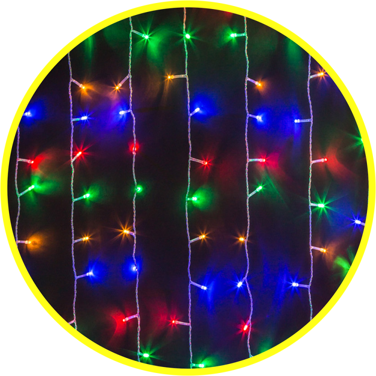 тип гирлянды - занавес ; цвет свечения - разноцветное RGBY; 8 режимов свечения; размер - 1,5х1,5 м; длина провода до первого светодиода - 1,5 м; количество светодиодов - 288 шт; расстояние между светодиодами - 8 см; расстояние между нитями - 10 см; тип провода - прозрачный ПВХ; соединение в линию до 5 гирлянд; степень защиты - IP20; температура эксплуатации от -20 до +40°С; срок службы - 50000 часов; гарантия - 12 месяцев.