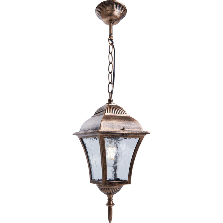 Светильник садово-парковый, серии «Таллин», (НСУ) FERON PL615 60W, E27, 230V, IP44, цвет черное золото, 4-х гранник, на цепочке, 145*145*800мм