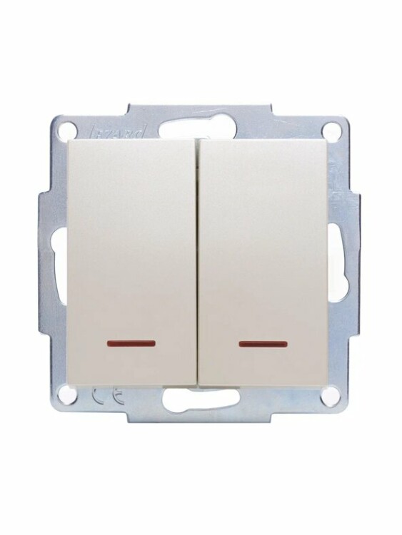 Lezard VESNA Выключатель двойной с подсветкой жемчужно-белый перламутр (10шт/120шт)