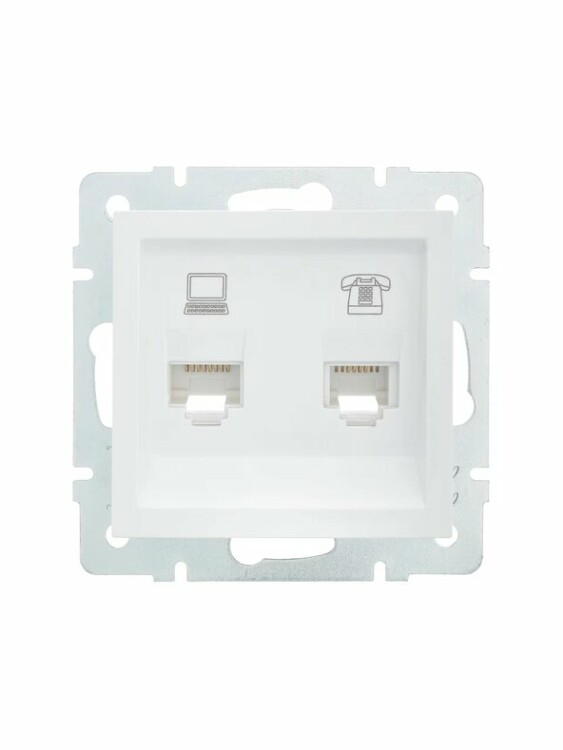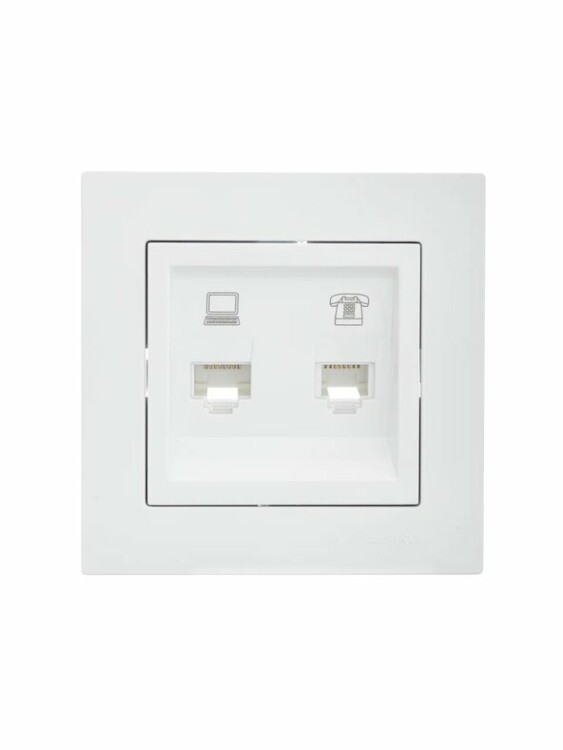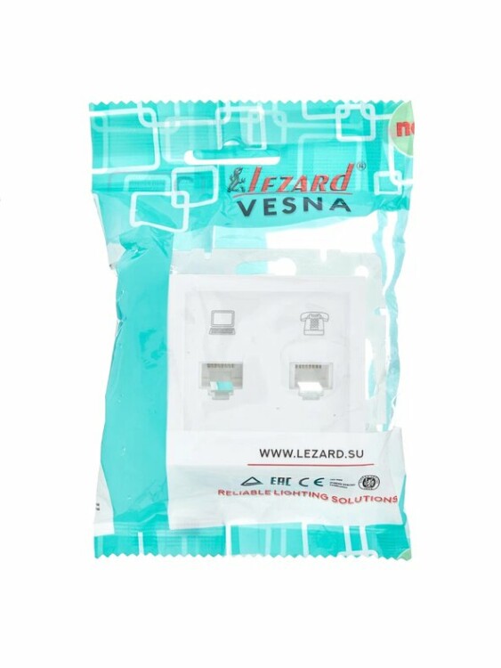 Lezard VESNA Розетка компьютер+телефон белая (10шт/120шт)