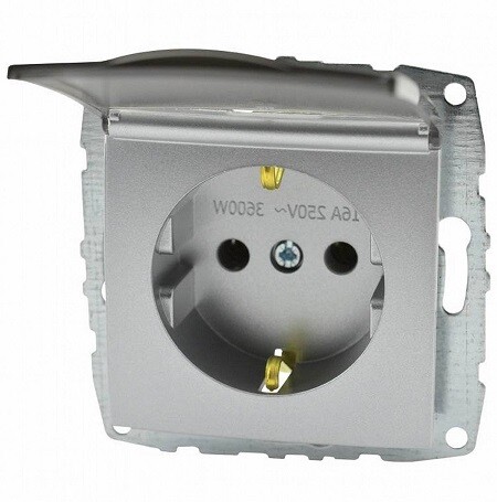 MONO ELECTRIC L / D Механизм Розетка с/з с крышкой Серебро 1/12/60