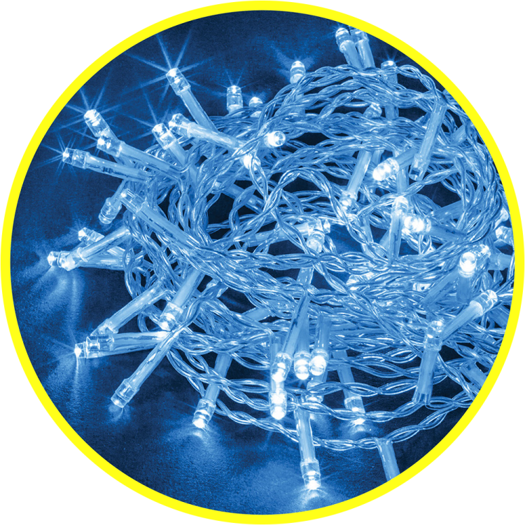 тип гирлянды- нить; цвет свечения - синий; 8 режимов свечения; общая длина - 6,5 м; длина провода до первого светодиода - 1,5 м; количество светодиодов - 100 шт; расстояние между светодиодами - 5 см; тип провода - прозрачный ПВХ; степень защиты - IP20; температура эксплуатации от - 20 до +40°С; срок службы - 50000 часов; гарантия -12 месяцев.