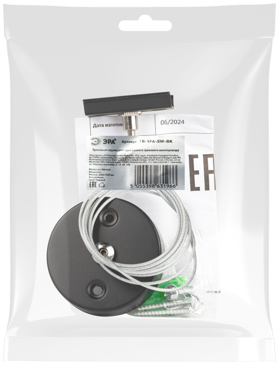 ЭРА Подвес TR-1PA-SW BK 1,5м для однофазного шинопровода черный